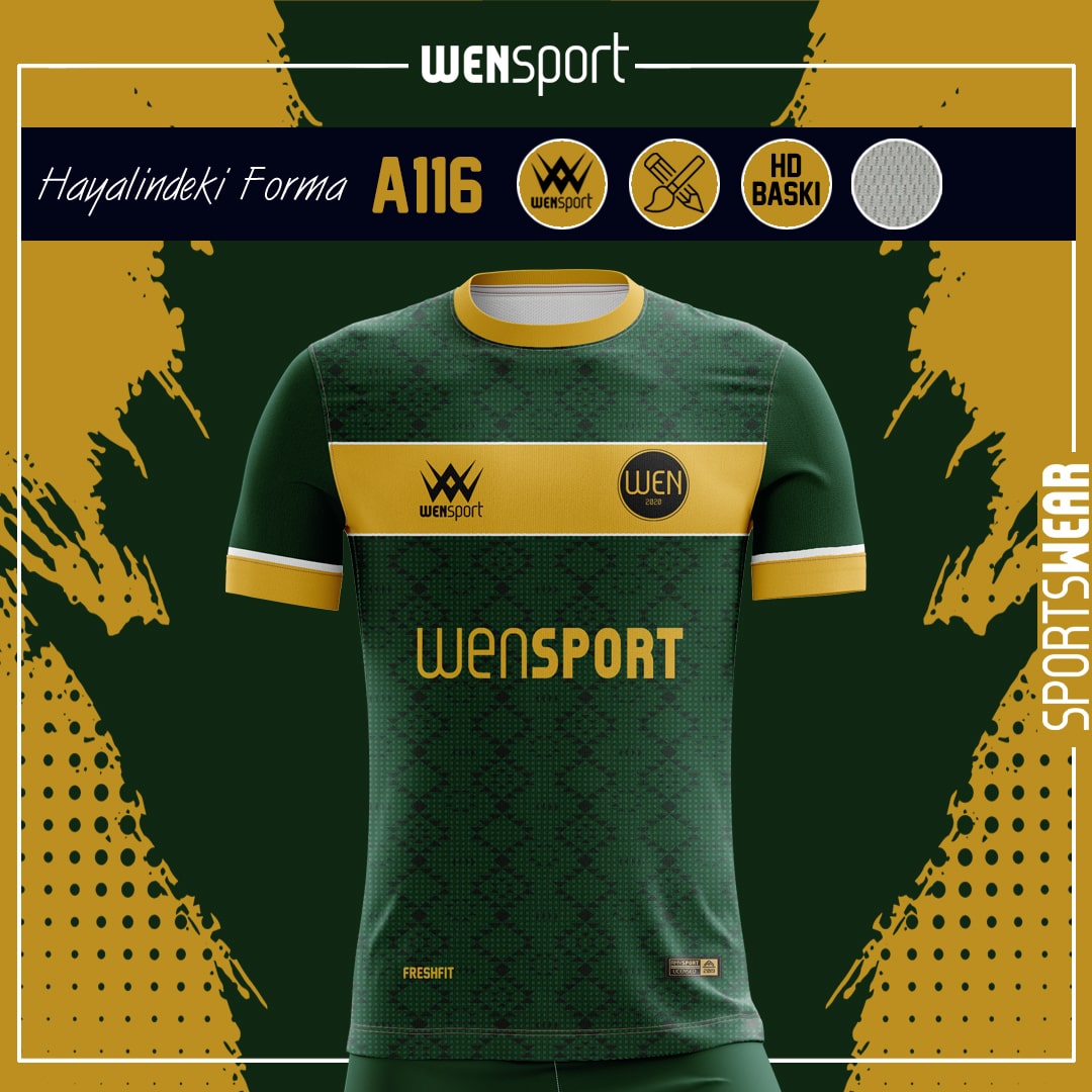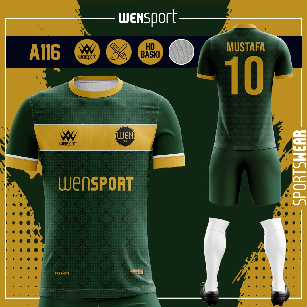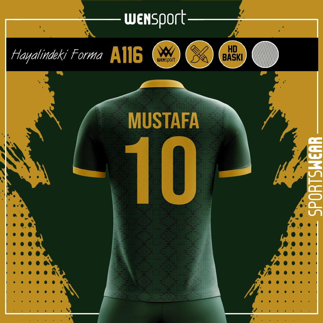 AA116 Yeşil gold forma ile sizde takımınızın ruhuna güç katın. hayalinizdeki formayı yaptırmanın tam zamanı.